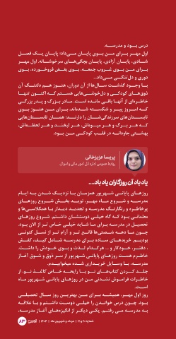 خاطـرات فرامـوش نشـدنی مـن در روزهـای پایانـی شـهریور مـاه