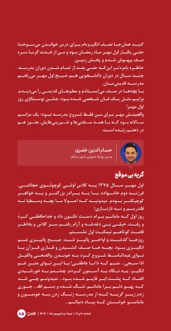 واقعیتـش مهـر بـرای مـن فقـط شـروع مدرسـه نبـود؛ یک مراسـم