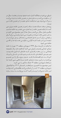 تـا اینکـه در آبا نمـاه سـال ۱۳۹۹شـهرداری منطقـه ۱۲تهـران از خانـه